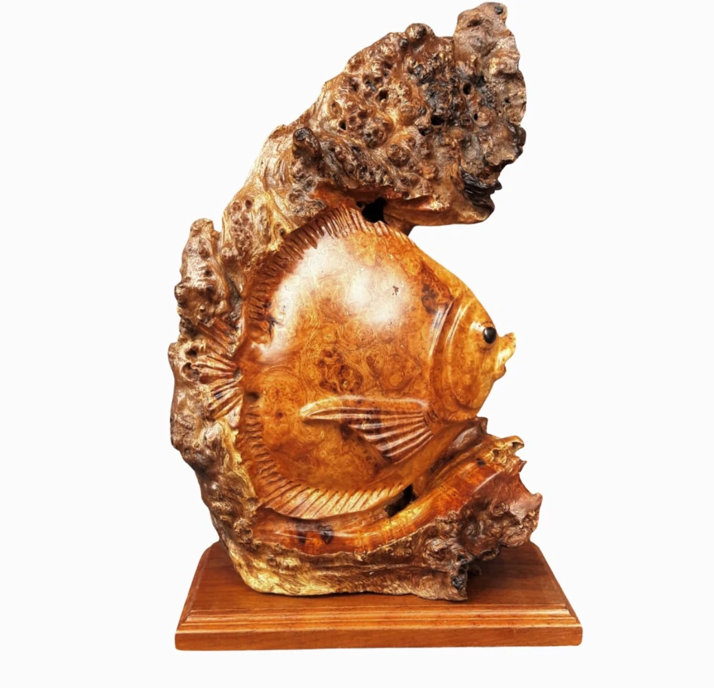 Burlwood Natural Shaped Hand Carved Fish Statue Fish | Wood Crafts Our Products Product Detail Contact Us Burlwood Natural Shaped Hand Carved Fish Statue